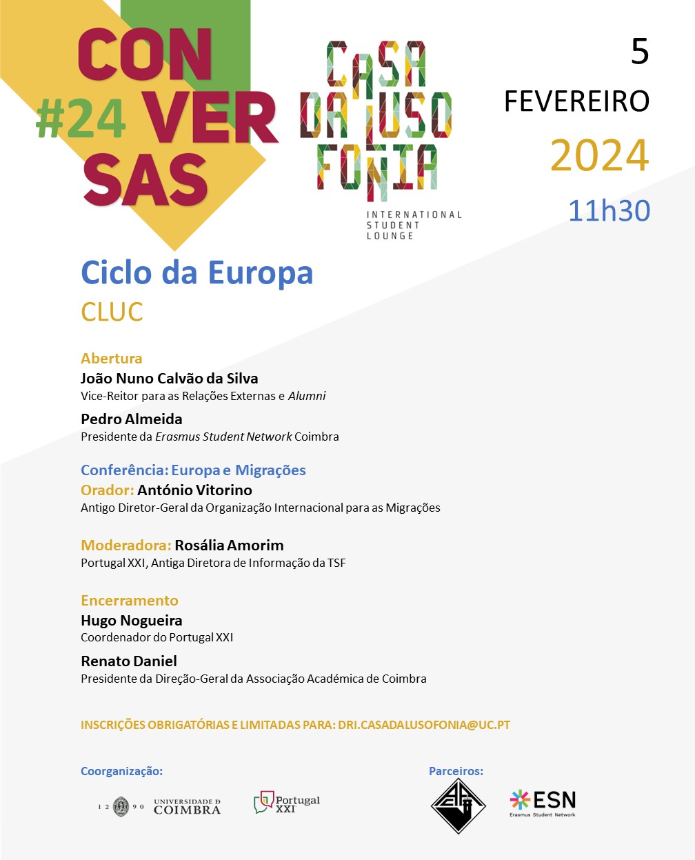 Evento organizado pela Universidade de Coimbra em Parceria com o Portugal XXI
